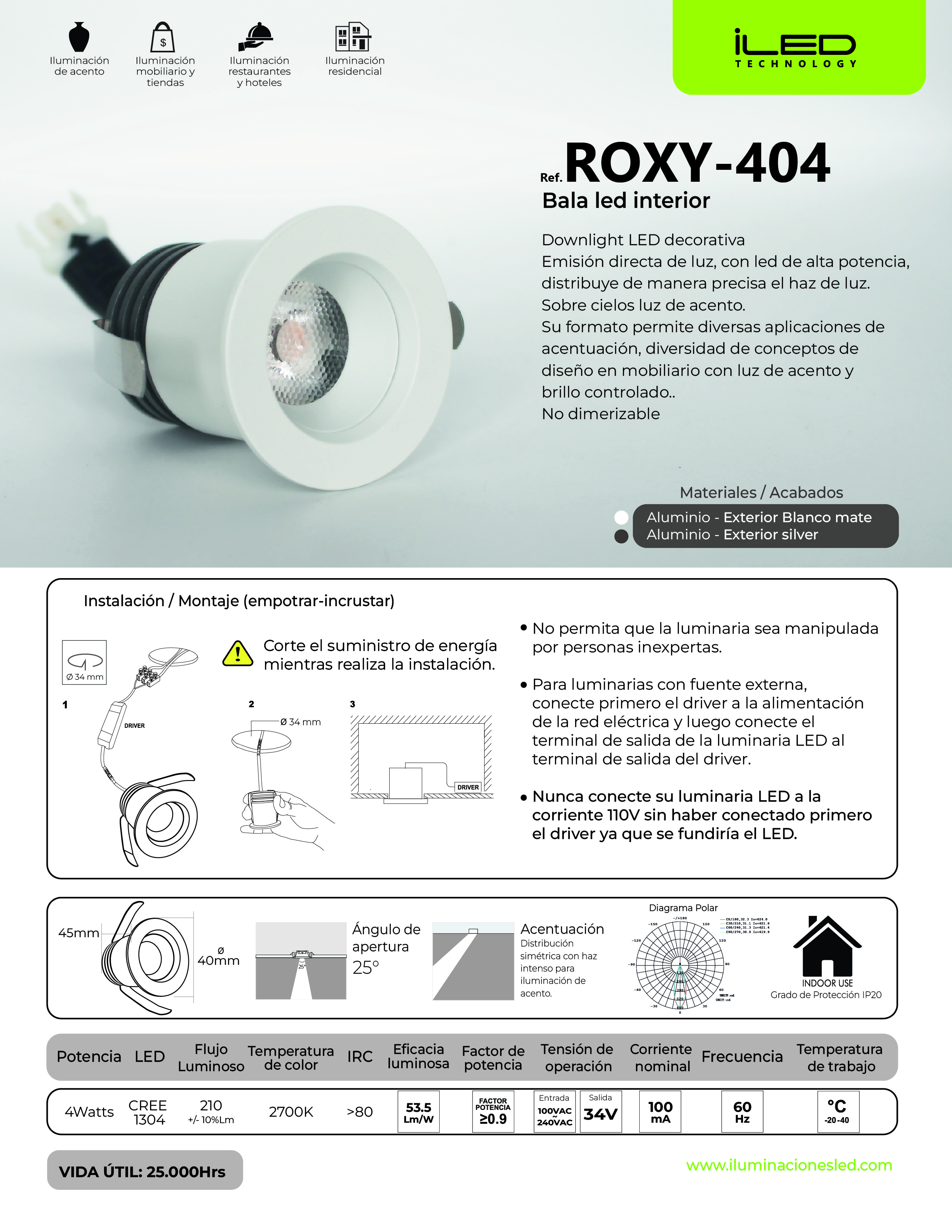 Color Disponible: Blanco Mate, Silver
